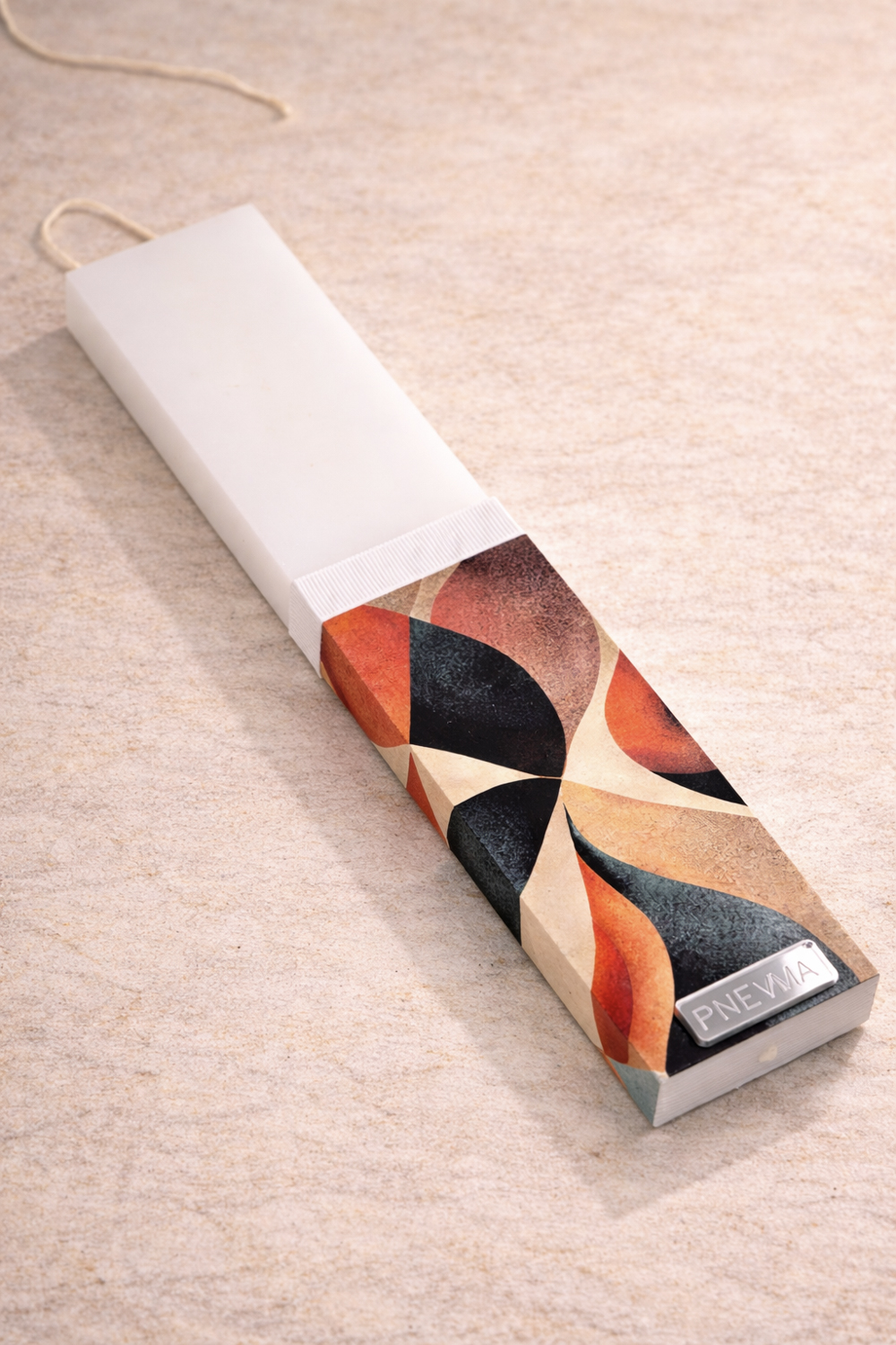 Ζεστή παλέτα, ήρεμη σύνθεση. Λαμπάδα 25×4.5 cm με εκτύπωση Γαία σε απαλές γήινες αποχρώσεις και οργανική γεωμετρία, με διακριτικό plexiglass στοιχείο. Το μοτίβο συμβολίζει αρμονία και γαλήνη