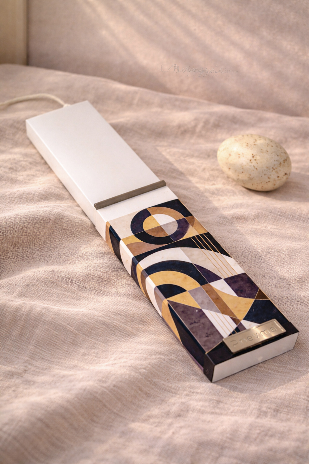 Bold καμπύλες με premium αντίθεση. Λαμπάδα 25×4.5 cm με εκτύπωση Retro Portal σε βαθιά χρώματα και γεωμετρικά arcs, με διακριτικό plexiglass στοιχείο. Η σύνθεση θυμίζει mid-century αφίσα